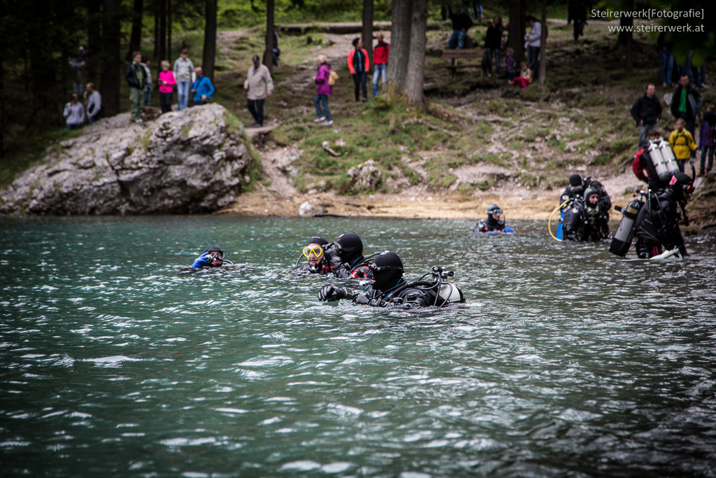 Im Mai 2015 besuchten wir selbst wieder einmal den schönen Grünen See. Wir haben an diesem Tag selbst gesehen, wie sich der Ansturm auf den See verändert hatte. Stellvertretend haben wir bewusst dieses Titelfoto am Anfang unseres Artikels gewählt. Sowohl rund um den See als auch im Wasser tummelten sich sehr viele Menschen. Wo man früher an einem normalen Tag keine oder höchstens drei Taucher verstreut im See entdeckt hatte, waren es an diesem Tag – geschätzt – dreifach so viele auf einem Fleck. Für die Taucher ist das Verbot sicher schade – die dortige Unterwasserwelt ist (wie man an Unterwasser-Aufnahmen sieht) traumhaft schön. So postete der amerikanische Schauspieler Ashton Kutcher auf Facebook & Twitter eines dieser Fotos mit der Anmerkung „This magic moment …“ (Quelle: mypics.at/blog/gruener-see-ashtons-kutcher-magic-moment/)