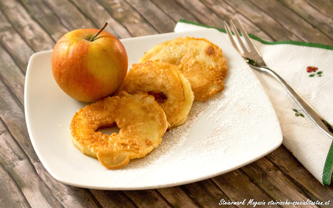 Steirische Äpfel werden beim einfachen Apfelkrapfen Rezept süß und einfach in Szene gesetzt. Dafür werden die Äpfel geschält, entkernt und in runde Ringe geschnitten, anschließend durch einen Teig gezogen und herausgebacken. Viele werden die Apfelkrapfen besser unter Apfelradl oder gebackene Apfelringe, Apfelscheiben kennen. Bei uns zuhause heißen sie seit jeher Apfelkrapfen und werden etwas Figur-schonender und leichter als herkömmliche Rezepte zubereitet.