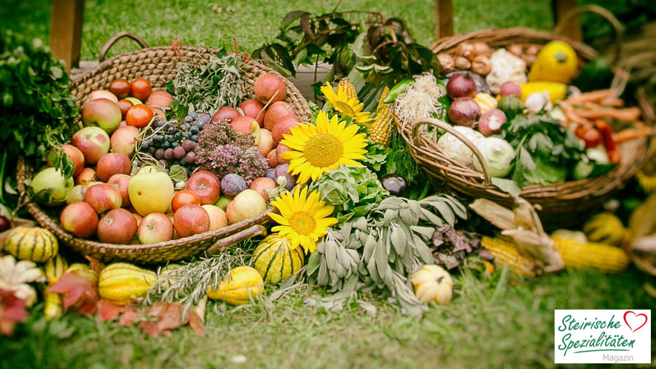 Beim Erntedankfest und der Weinlese zeigt sich die Steiermark noch einmal in seiner Hülle und Fülle: Äpfel, Birnen, Zwetschken, Nüsse, Kürbis, Kastanien, Käferbohnen und vieles mehr haben Saison. Wunderbar lassen sich die saisonalen Zutaten in der Herbstküche zu köstlichen Gerichten verkochen. Mit gesunden Lebensmitteln und spannenden Rezepten werden die eigenen Abwehrkräfte noch einmal so richtig gestärkt und fit für den Winter gemacht. Auch Fleisch ist bei traditionellen Herbst-Rezepten mit dabei, Wild hat Hochsaison, zu Martini im November gesellt sich auch noch die Gans dazu.